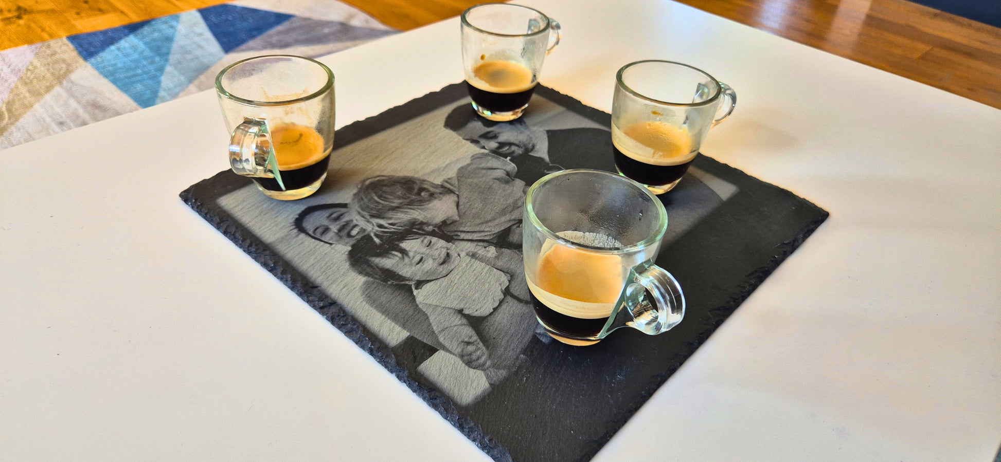 Offrez une touche d’émotion et d’authenticité à votre table avec notre ardoise naturelle gravée sur mesure avec la photo de votre choix.