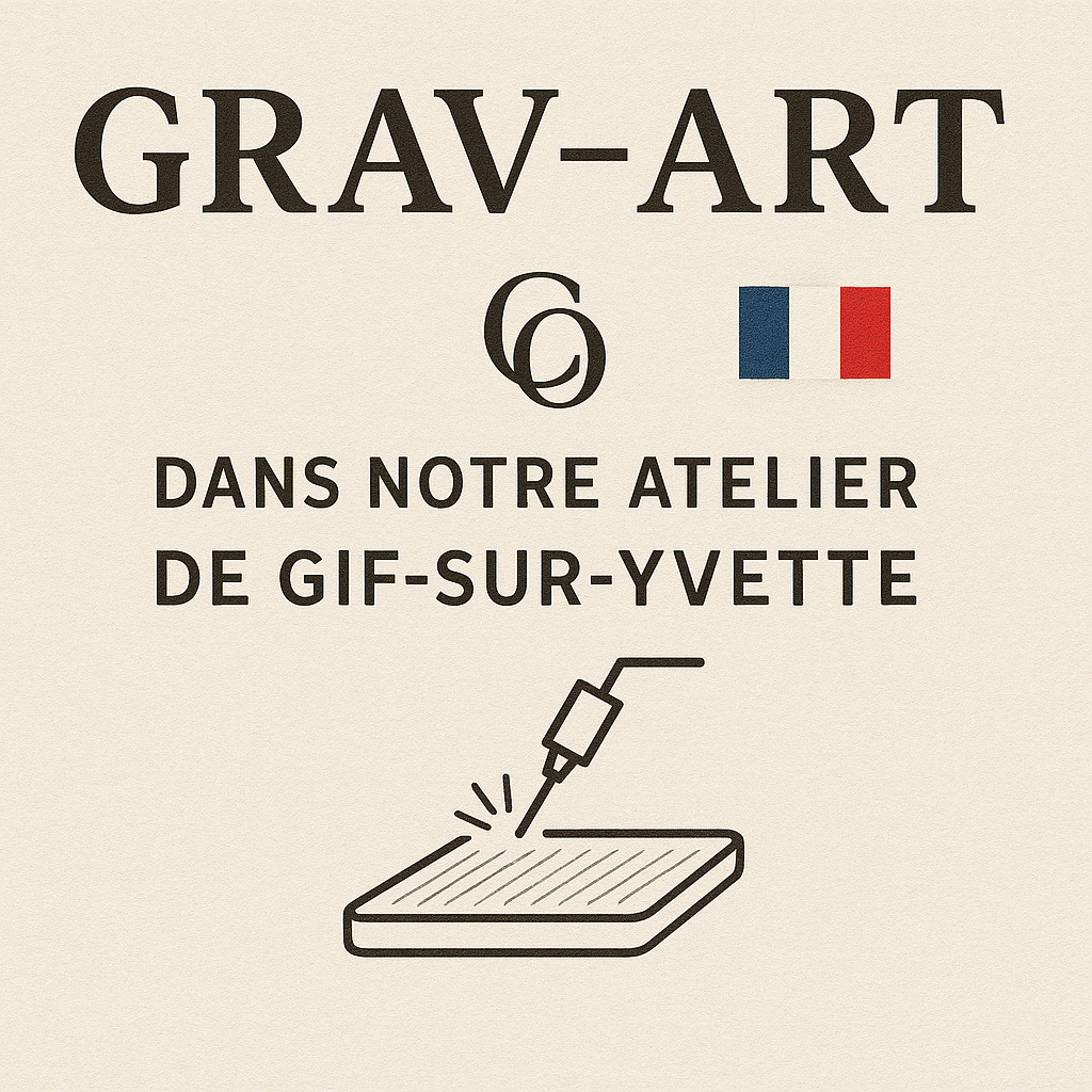 Tous nos produits sont conçus avec soin et gravés en France, dans notre atelier situé à Gif Sur Yvette en Essonne. Grâce à la gravure laser de haute précision, chaque création est unique et durable.