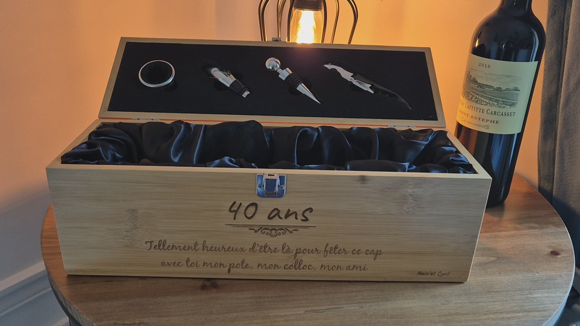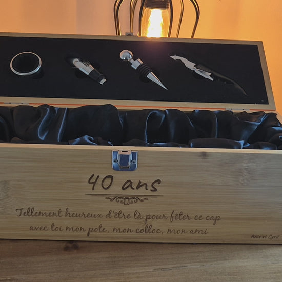 🎁 Un cadeau unique et personnalisé – Offrez une boîte à vin en bois gravée avec le message de votre choix pour marquer un anniversaire, une fête des pères, un mariage ou un départ à la retraite.