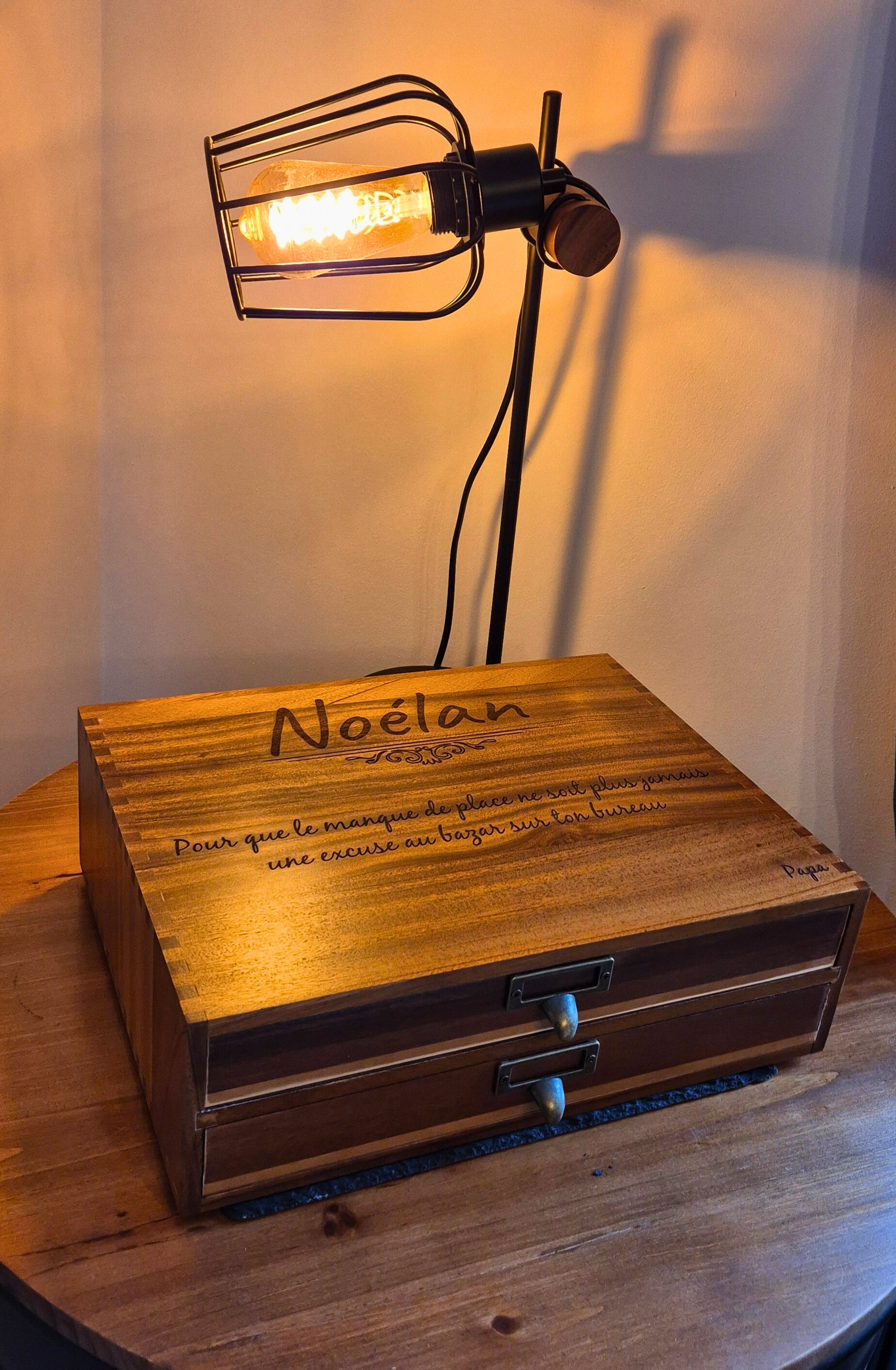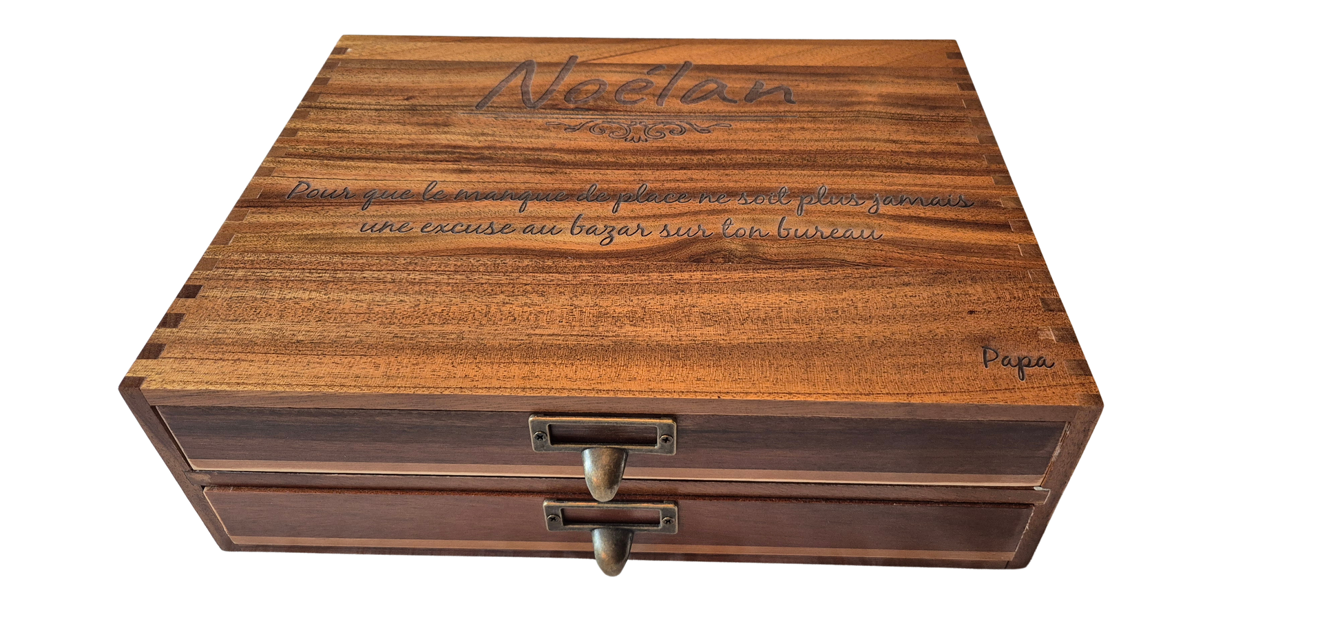 Organiseur de bureau personnalisable avec gravure laser – Coffret organisateur de bureau 2 tiroirs – Cadeau original maître, maîtresse, collègues, parents ou entreprise – 35x27x11 cm